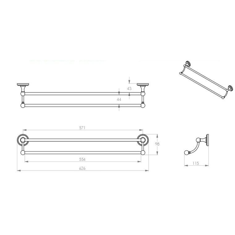BATHROOM BUTLER 2182 DOUBLE TOWEL RAIL 600 POLISHED CHROME