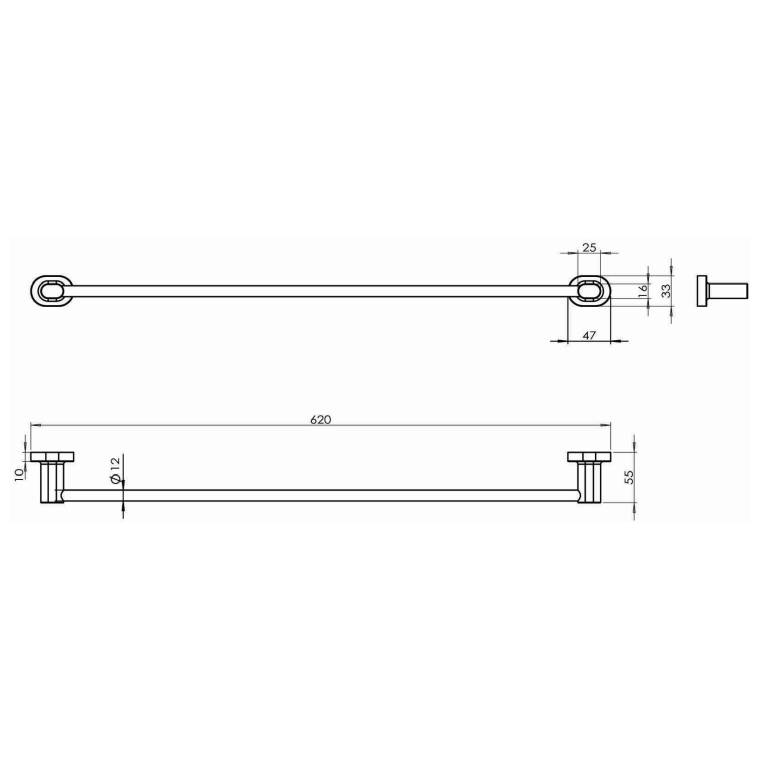 PLUMLINE MAHALE SINGLE TOWEL RAIL 600mm