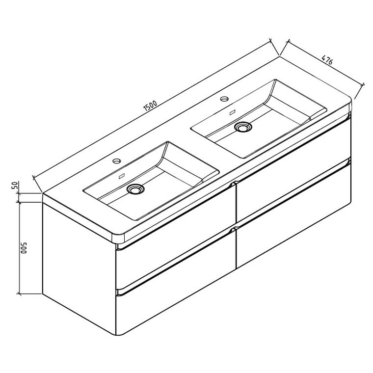CLEAR CUBE MILAN CABINET 4 DRAWERS 1500x480x500mm