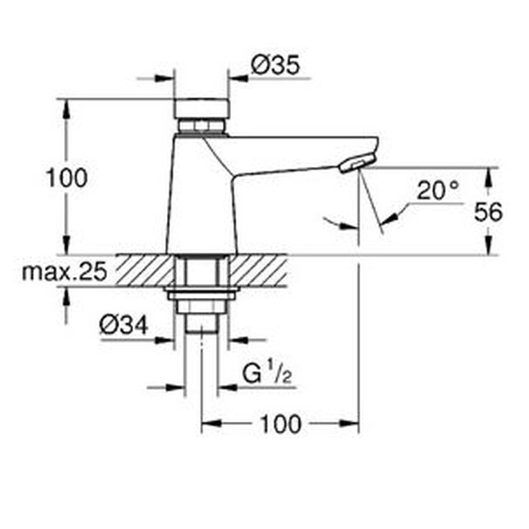 GROHE EUROECO COSMO METERING BASIN PILLARTAP CP G-36265000