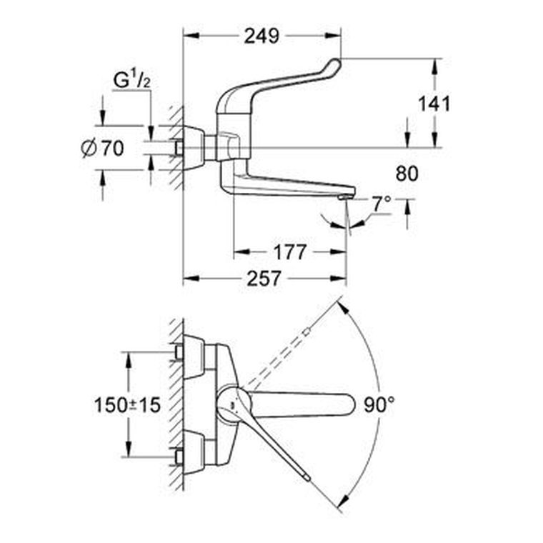 GROHE EUROECO MEDICAL BASIN MIXER WT SWIVEL SPOUT LONG G-32793000