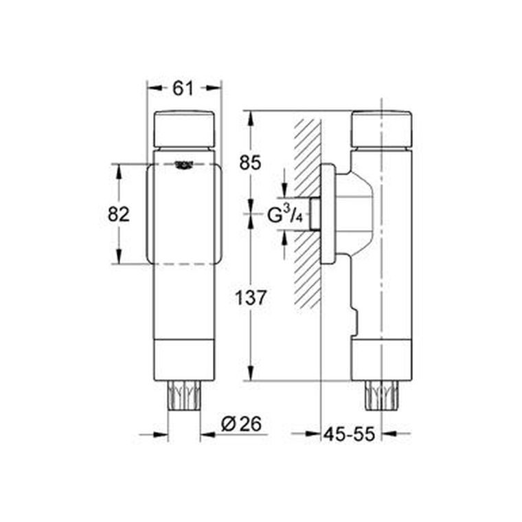 GROHE TOILET FLUSH VALVE EXPOSED CP RONDO CP G-37349000